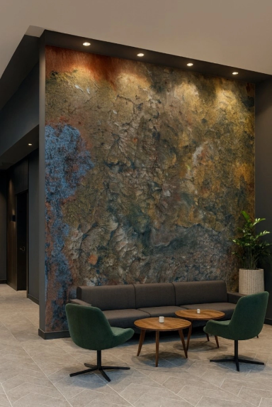 Seit 2026 bewegt sich J’ontrast über die klassische Leinwandkunst hinaus und gestaltet Räume im Bereich der architektonischen Wandverkleidung.